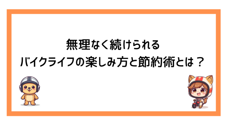 40代ライダーが語る!無理なく続けられるバイクライフの楽しみ方と節約術